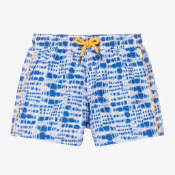 Boys navy blue swim shorts by Playshoes feature UPF 50+ protection. These stylish swim shorts are perfect for poolside fun or beach activities. They include a stretchy jersey front lining for added comfort, stripy panels on the sides, and a charming red anchor motif on the front. Limited quantities available, so don't miss your last chance to buy.
