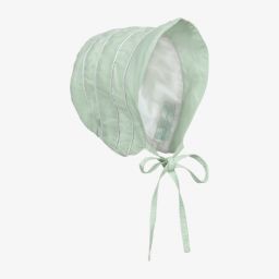 Adorable bonnet for baby girls by Powell Craft, in blue with white piping trim. Made in a soft and lightweight linen and cotton blend, it has a lightweight lining and fastens with ties under the chin.