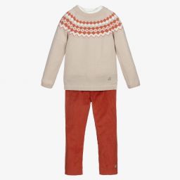The boys blue knitted trousers set by Pretty Originals combines comfort and style for spring and summer wear. Crafted from soft cotton, the top features blue and white stripes with ribbed trims, short sleeves, and a charming button detail. The back popper fastening ensures easy dressing. Paired with matching trousers featuring a comfortable elasticated waistband, this set is perfect for playful days. Limited quantities available, so seize this opportunity to add a touch of elegance to a little one's wardrobe.