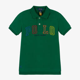 With a colourful Polo logo and the signature pony logo embroidery, this navy blue polo shirt for boys is unmistakably Ralph Lauren. It is made in soft cotton piqué in a classic styling with a ribbed collar and trims, vented sides, and front button fastenings.