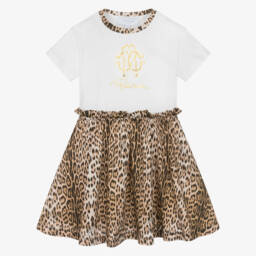 Roberto CavalliРозовое платье с леопардовым принтом для девочек-подростков