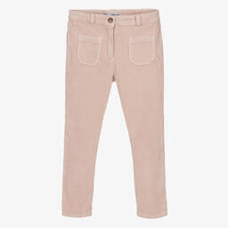Navy blue trousers for boys by French brand Tartine et Chocolat, made in super soft viscose blend flannel. These smart trousers have slanted front pockets, turn-ups on the cuffs, faux button trims and a faux back pocket. They have a useful adjustable waist for a good fit and fasten with a branded button and zip on the front.