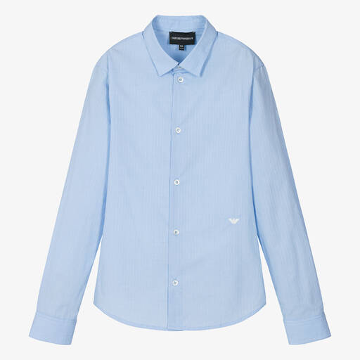 Emporio ArmaniСиняя рубашка из хлопка и льна для подростков