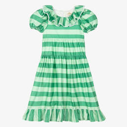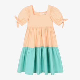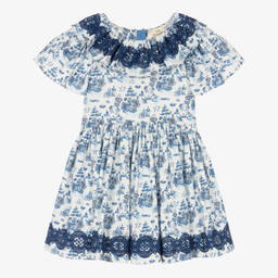 Black and royal blue cotton dress for teen girls by British brand The Middle Daughter. Beautifully designed, it has romantic blouson sleeves with elasticated cuffs, and a tiered flared skirt with piped trim. Made in lightweight poplin, it fastens discreetly with a concealed zip on the back, and has a soft cotton voile lining on the bodice for extra comfort.