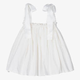 A dramatic dusky pink dress for girls by Swedish brand The Tiny Universe, made and lined in soft cotton poplin, with a tulle attachment for volume. This easy-to-wear style has a super stretchy elasticated hem and delicate satin tie shoulder straps.