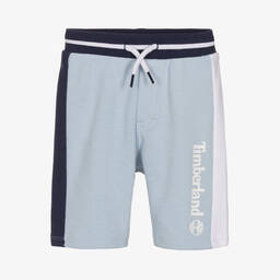 Great for casual wear, these dark blue shorts for little boys are by Timberland. They are made in the softest cotton jersey, and have a stretchy drawstring waistband for a comfortable fit. There are white and cobalt blue side panels, with a white logo print on one leg.