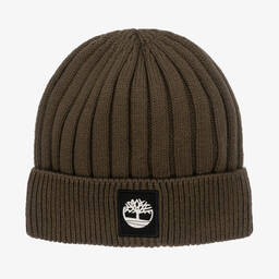 Mustard yellow beanie hat for boys by Timberland, made in a chunky, ribbed cotton knit. Warm and cosy, it has a turned-up brim, with the brand's iconic white rubberised tree logo on a black patch on the front.