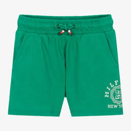 Boys blue cotton jersey shorts by Tommy Hilfiger offer a casual, comfortable wear. Made from soft, lightweight cotton jersey, these shorts feature an easy drawstring waist and slanted front pockets. An off-white logo print on the leg and an embroidered flag on the back add signature Tommy Hilfiger style. Last chance to buy, limited quantities available.