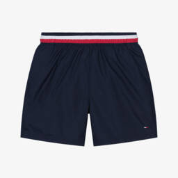 Boys orange flag swim shorts by Tommy Hilfiger, crafted in lightweight nylon fabric with recycled fibres. The red and white block colours on the front form the iconic Tommy Hilfiger flag, complemented by logo-branded trims on the legs and a signature tab on the back velcro pocket. An easy drawstring waist and inner mesh lining ensure a comfortable fit for swimming. Limited quantities available, last chance to buy.