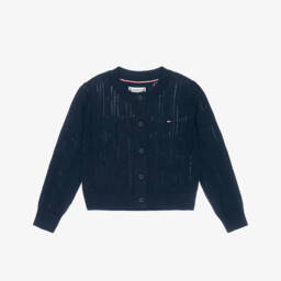 Girls ivory cable knit cardigan by Tommy Hilfiger offers a timeless and elegant look. Crafted from a soft blend of viscose, polyester, and polyamide, it features a charming cable pattern and branded button fastenings for a stylish finish. The iconic flag logo subtly adorns the chest, adding a designer flair. Perfect for layering during spring and summer, this cardigan is available in limited quantities, making it a last chance to buy for those seeking a unique wardrobe addition.