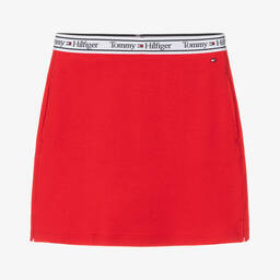 A great addition to her casual wardrobe, this navy blue cotton jersey skirt for teen girls is by Tommy Hilfiger. It has an elasticated waistband in white, with jacquard logo branding for a cool designer look. There are useful side seam pockets and a signature flag logo embroidered on the front.