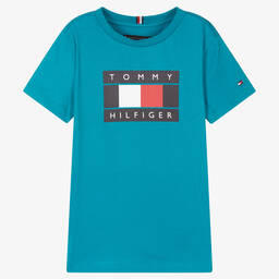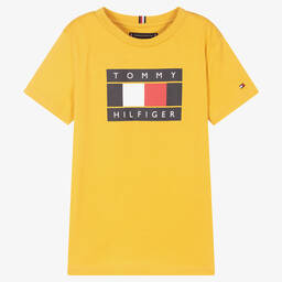 White T-shirt for teen boys by Tommy Hilfiger, made in soft cotton jersey. It has the brand's flag logo print on the front, with a matching logo on one sleeve.