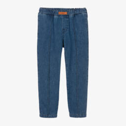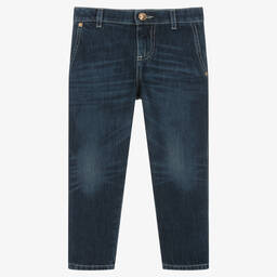 Teen girls blue-washed flared jeans by luxury Italian brand Versace, accented brightly with a gold Medusa logo button and matching rivets. Another black logo patch on the back, completes these jeans for a co-ordinated finish. They are made in soft cotton denim with classic five-pocket styling.