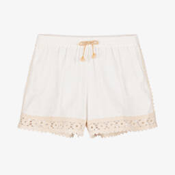 ZimmermannКремовые шорты из хлопка с кружевной отделкой для девочек