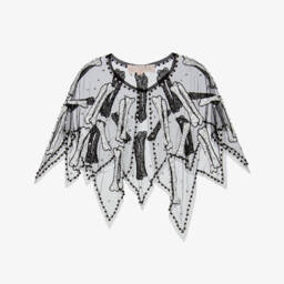 A beautiful finishing touch to an outfit, this organza cape is by London-based designer, Self Portrait. In soft yellow with 3D effect floral appliqués, there are three cascading tiers with scalloped edging, createing a luxurious and opulent effect. The cape fastens at the neck with a popper and decorative grosgrain ribbon bow.