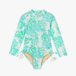The girls pink botanical floral print swimsuit by Shade Critters offers a delightful blend of style and protection with UPF50+. Crafted from silky smooth and stretchy fabric, it features an enchanting botanical design in green and ivory, complemented by chiffon ruffle sleeves. Fully lined for comfort, the swimsuit is perfect for sunny beach days, with an easy back zip fastening. Limited quantities available – secure this charming piece for the upcoming season.