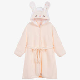 Light pink bathrobe for younger girls from Sofija, a design exclusive to Childrensalon. Cosy and comfortable, it is made from cotton towelling and designed with a fleece-feel underside to keep little ones warm. With beautiful fabric roses and leaf embroidery, this tie-up robe has a hood with tassel details and easy-fastening poppers on the front. Front patch pockets complete the look.