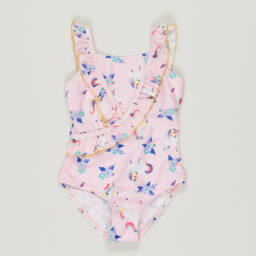 Girls pink and purple floral swimsuit by Soli Swim features charming ruffled sleeves and a delightful array of flower appliqués across the waist. Crafted from a soft, knitted fabric blend of polyester and spandex, this swimwear provides both comfort and stretch, ensuring a snug fit for active beach days. Perfect for spring and summer adventures, it’s available in a range of sizes for junior girls. Limited quantities available, so grab this playful piece before it’s gone.