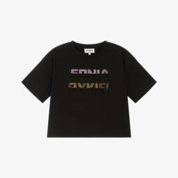 The girls white cotton T-shirt by Sonia Rykiel Paris features a vibrant, glittery floral logo on the front. Crafted from soft, lightweight jersey, it offers a trendy boxy fit with dropped shoulders and capped sleeves. Perfect for casual outings, this top combines comfort and style effortlessly. Limited quantities are available, making it a must-have addition to a spring or summer wardrobe.