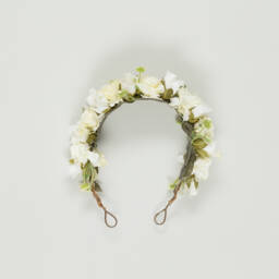 The girls peach floral headpiece by Souza is a charming addition to any outfit. Featuring a satin ribbon covered band with internal grips for a snug fit, it includes delicate pink and orange chiffon flowers and sparkly sequin buds. Satin ribbons tie at the back, creating an elegant look suitable for special occasions. With limited quantities available, this exquisite accessory is a must-have for completing a lovely outfit.