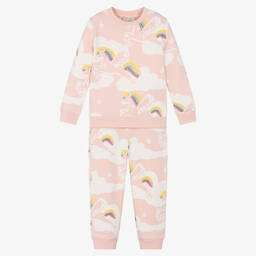 A dark green tracksuit for boys by Stella McCartney Kids, made in super soft organic cotton jersey. This tracksuit has a brown grizzly bear pattern for fun and casual styling. The joggers have a comfortable drawstring waist, side pockets and a back pocket with a slit. The Stella McCartney fit can be quite small so choose a size up if you want room to grow.