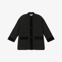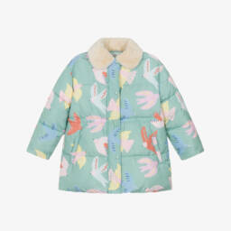 Lovely blue faux fur coat for girls by British designer Stella McCartney Kids, with a colourful pattern of abstract shapes. Super soft with a mid-weight padding and silky smooth lining, the fabrics are made from recycled sources. A fun transeasonal coat to wear, it is easy zip-up with concealed side seam pockets and a sweet collar to finish the look.