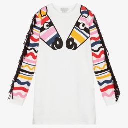 The pink printed frill sleeve dress by Stella McCartney Kids is a delightful choice for girls, featuring a charming fairy garden design. Made from soft organic cotton jersey, it ensures comfort while being kind to the planet. With popper fastenings for easy dressing, the dress fits beautifully, though it runs small, so please check our sizing guide. Perfect for spring and summer outings, this is a last chance to buy with limited quantities available.