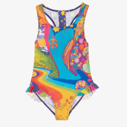 Girls pink ice cream swimwear by Stella McCartney Kids features a delightful ice cream pattern set against a soft pink backdrop. Crafted from silky, stretchy fabric made of recycled materials, it offers UPF50+ protection. The racerback design includes charming, dotted ruffle trims for a playful finish. Ideal for sunny adventures, this swimsuit ensures both style and sun safety. Limited quantities available, making it a must-have for the season.