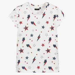 Beige cotton T-shirt for boys by Stone Island Junior, featuring the brand's signature compass logo on the back with a cool graffiti-style effect. Casual and comfortable, this short-sleeved tee is made in soft jersey with a classic crew neckline. A smaller compass logo is printed on the front for a finishing touch.