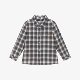 Boys blue striped linen shirt by Tartine et Chocolat offers a casual collarless design, perfect for spring and summer. Crafted from a soft cotton and linen blend, it features a blue embroidered monogram and branded button fastenings. Limited quantities available, making it a last chance to buy.