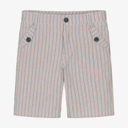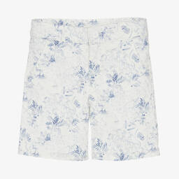 White linen shorts for boys by Tartine et Chocolat offer comfort and breathability for warm days. Crafted from soft, lightweight linen, these shorts feature slanted front pockets with decorative flaps and a subtle monogram below the faux back pocket. The adjustable waist ensures a perfect fit, while button and zip fastenings provide ease of wear. Ideal for junior boys, these stylish shorts are a wardrobe essential for spring and summer. Limited quantities available, so grab yours now.