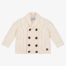 Girls navy blue crochet wool cardigan by Tartine et Chocolat offers a delightful combination of style and warmth. Crafted from a soft wool blend, it features exquisite ivory crochet detailing on the collar and faux pockets, complemented by a charming heart logo near the hem. Suitable for layering during cooler months, this piece is ideal for adding a touch of elegance to any outfit. Limited quantities available, so secure this beautiful cardigan today.
