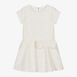 The girls white cotton embroidered dress by Tartine et Chocolat is beautifully crafted in soft cotton broderie anglaise. This lightweight dress features charming flutter sleeves and a tiered, floaty skirt adorned with colourful wildflower prints, making it perfect for spring-summer outings. Lined in soft cotton voile for added comfort and equipped with a concealed back zip for a seamless finish. Last chance to buy this exquisite dress, available in limited quantities.