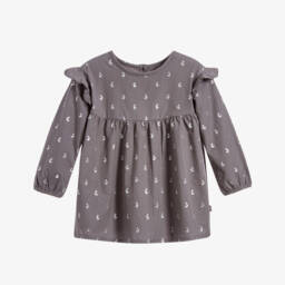 Dark grey hooded pramsuit for baby boys and girls by The Little Tailor, knitted in soft cotton with a lovely cable pattern. The hood has a cosy plush lining to keep little ones warm and a removable faux fur trim. The body is lined in soft cotton jersey and it fastens with a zip and wooden buttons on the front.