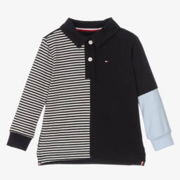 Boys navy polo shirt by Tommy Hilfiger offers a classic design crafted from soft, regenerative cotton. The shirt features a stylish logo on the chest and a smart button-up front, accentuated by a striped collar that adds a touch of elegance. Perfect for casual outings or family gatherings, this polo shirt pairs seamlessly with trousers or shorts. Limited quantities available, so ensure to add this timeless piece to a wardrobe today.
