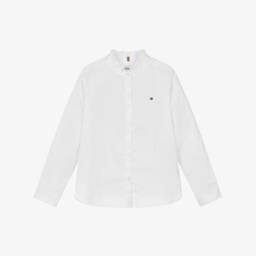 Teen girls blue cotton stripe blouse by Tommy Hilfiger features a charming mix of blue and white stripes. Accented with subtle branding, the front is detailed with iconic flag embroidery, while the back showcases logo lettering. The gathered ruffle design and front buttons add a stylish touch. Crafted from lightweight cotton, this sleeveless blouse ensures lasting comfort. Limited quantities available, so act fast to secure this delightful piece.