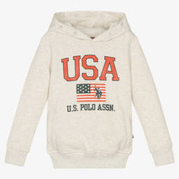 Ivory sweater for boys by U.S. Polo Assn., made in a soft and cosy cotton cable knit. Great for layering over a T-shirt, this warm jumper has the brand's double horseman logo embroidered on the chest in teal blue and a logo tab on the side seam. The snug ribbed trims complete the look.