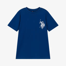 In navy blue, pink and white stripes, this boxy-fit T-shirt for girls is by U.S. Polo Assn.. Made in soft and comfy cotton jersey, it has the brand's signature double horseman logo embroidered on the chest in pale pink.