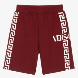 Comfortable royal blue shorts for boys by luxury Italian brand Versace, made in soft cotton jersey. They have white Greca logo prints on the front and a patch pocket on the back.