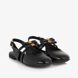 Girls ivory patent leather bar shoes by Versace offer a touch of elegance and sophistication. Crafted from glossy patent leather, these shoes are adorned with gold Medusa badges and double bow straps, providing a luxurious flair. The lightly cushioned leather insole ensures comfort, while the rubber sole offers improved grip. Ideal for complementing any spring or summer outfit, these shoes are a must-have. Limited quantities available, so secure your pair today.