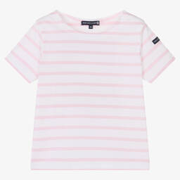 Classic blue and white Breton T-shirt for girls by Week-end à la mer, made from soft, stretchy cotton jersey. A casual wardrobe staple, this top has a branded navy blue tab on one sleeve for a subtle designer touch.