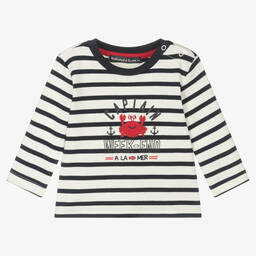 Girls long-sleeve tee in white and navy by Week-end à la mer features timeless Breton stripes that bring a nautical charm. Crafted from soft cotton jersey, the top includes an embroidered logo and a charming 'love' motif on the chest, complemented by heart-shaped floral elbow patches. Ideal for spring and summer outings, the design ensures comfort and easy wear, with popper fastenings for younger children. Limited quantities available, making it a perfect choice for a stylish wardrobe update.
