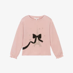 Little girls white long-sleeved T-shirt by Lili Gaufrette, made in soft cotton jersey. This charming top features a playful graphic of a girl on a bicycle adorned with a sparkling gold balloon and a 3D tulle skirt. Branded gold-tone buttons on the shoulder add a sweet finishing touch and ensure easy dressing.