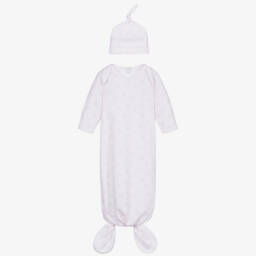 The boys white bear gown and converter by Kissy Kissy is a charming addition to any little one's wardrobe. Crafted from soft materials, it features adorable bear embroidery and convenient snap closures for easy changes. Perfect for keeping infants snug and stylish during the cooler months. Limited quantities available, so make sure to add this versatile piece to your collection before it's gone.