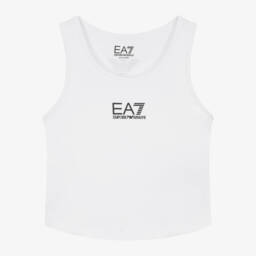 Sporty white Mini-me trainers for boys and girls by EA7 Emporio Armani, in the brand's Ultimate C2 Kombat style. These monochrome sneakers have the brand's iconic Eagle and EA7 logos stamped on the sides and a C2 midsole compound for absorption and support. Stylish and practical, they have a 3D diamond rubber outer sole, black laces and a high gloss logo on the tongue.